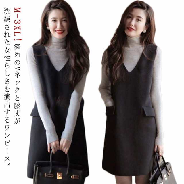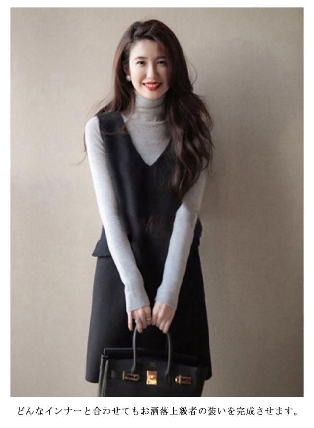 冬 ノースリーブ ワンピース レディース ジャンパースカート 厚手 秋 ロングワンピース ベスト ロングワンピ Vネック ニットワンピース 体型隠し 秋 冬 高見え プチプラ 30代 40代 大人 暖かい 無地 マタニティ 体型カバー Aライン カジュアル ストレート 送料無料