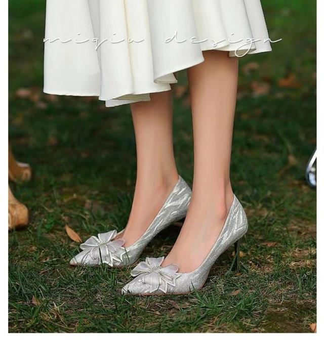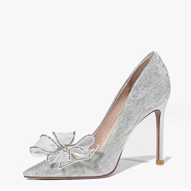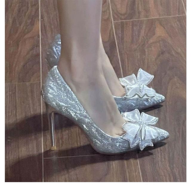 パンプス ハイヒール 甲浅 OL ピンヒール 6/8/10cmヒール ポインテッドトゥ グリッター 大人 結婚式 ウェディング キラキラ ラメ リボン オフィス レディース デイリー 履きやすい おしゃれ 大きいサイズ