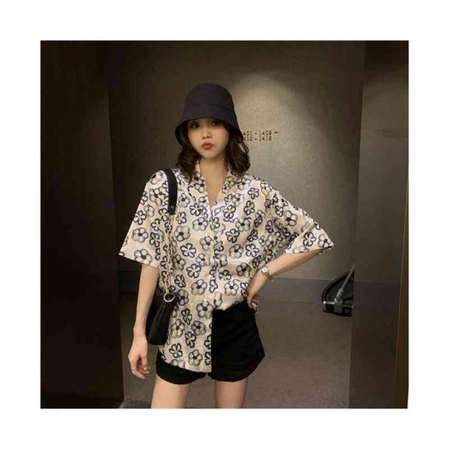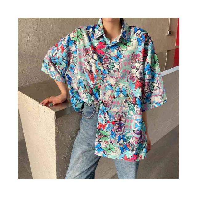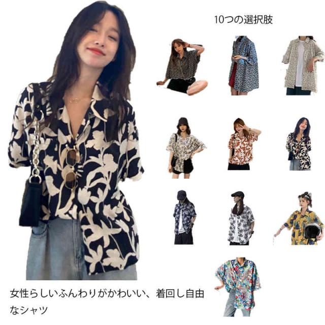 送料無料 ワイドタック ハーフスリーブシャツ レディース 柄 半袖 シャツブラウス 花柄 大きいサイズ 体型カバー シャツトップス トップス ブラウス おしゃれ 春夏 前開き シンプル 可愛い 通勤 無地 30代 40代 50代 カジュアル ゆったり 薄手 母の日