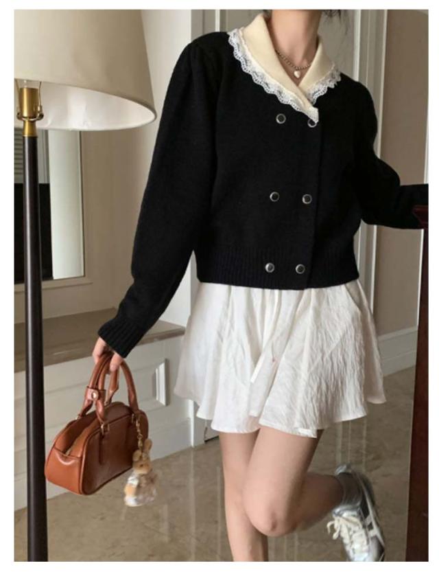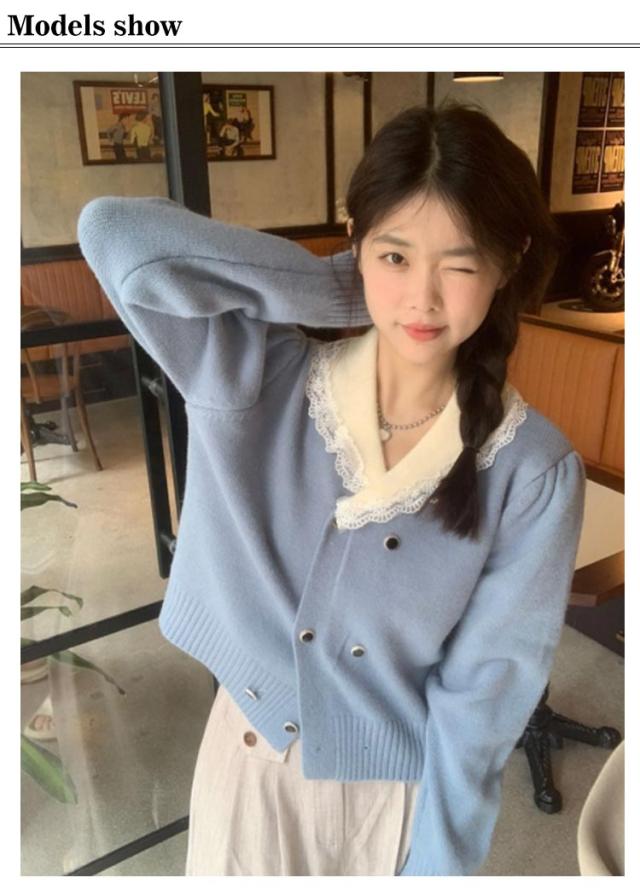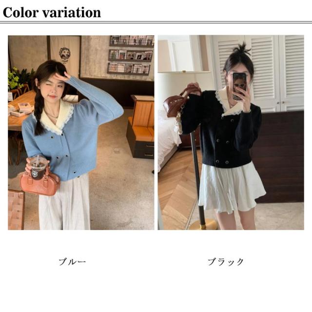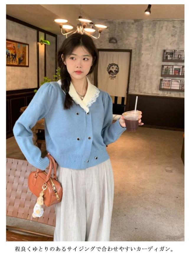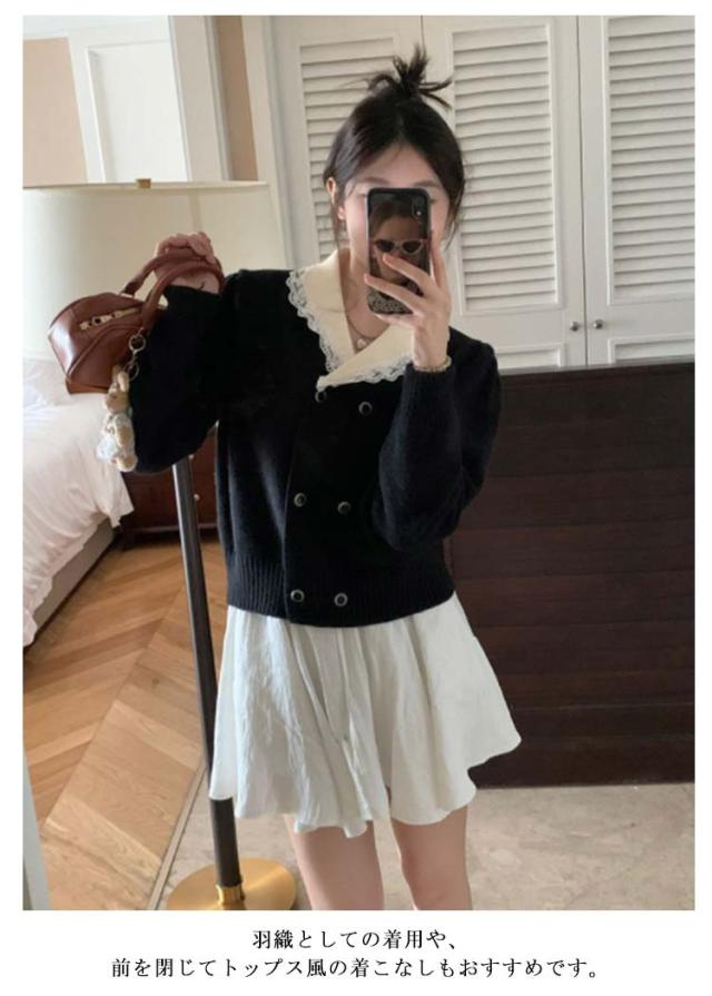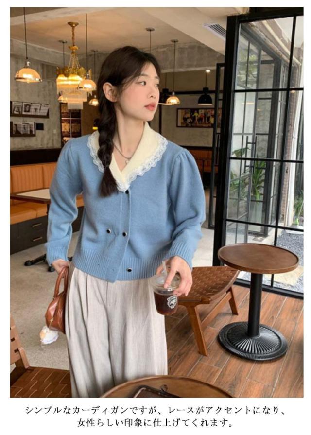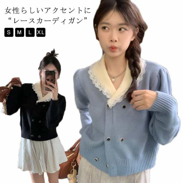 長袖 カーディガン セーター ショート丈 トップス ニットセーター ニット 羽織 vネック ニットトップス ニットカーデ レディース ニットカーディガン レース シンプル きれいめ オフィス かわいい 大人 カジュアル 通勤 通学 春 秋