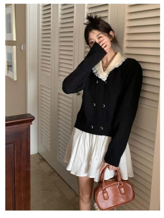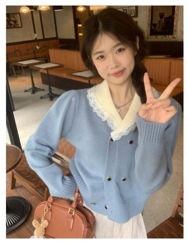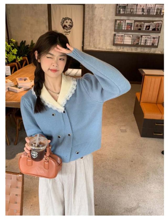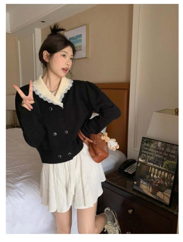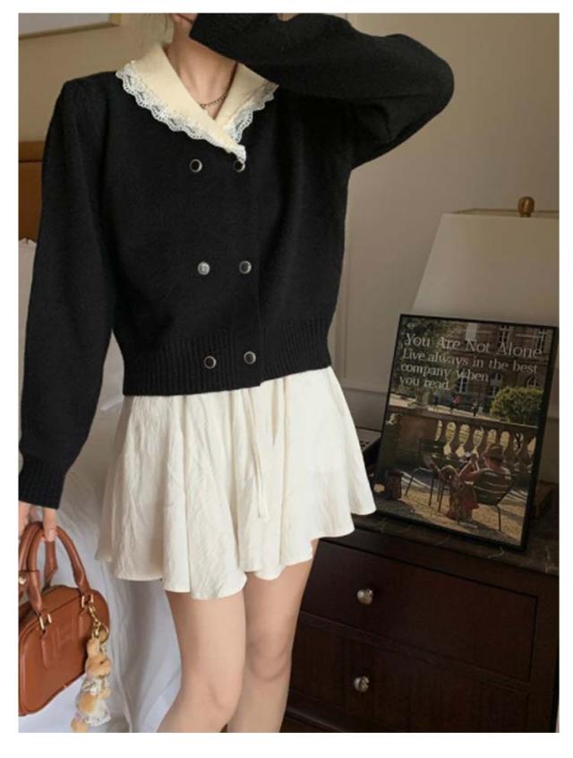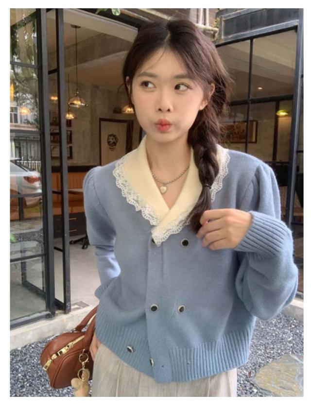 長袖 カーディガン セーター ショート丈 トップス ニットセーター ニット 羽織 vネック ニットトップス ニットカーデ レディース ニットカーディガン レース シンプル きれいめ オフィス かわいい 大人 カジュアル 通勤 通学 春 秋