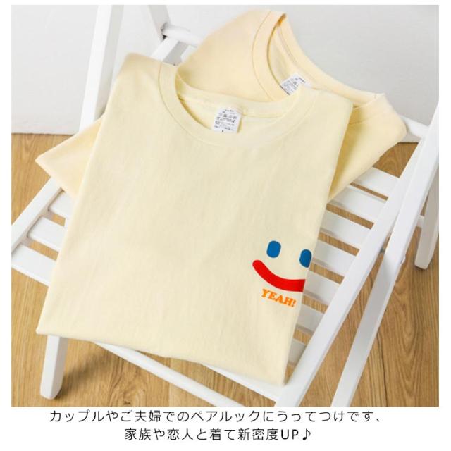 送料無料 カップル ペアtシャツ 半袖 スマイル ペアルック お揃い 服 春 夏 ビックシルエット tシャツ 韓国ファッション デート おでかけコーデ おそろ オルチャンファッション 韓国服 リンクコーデ