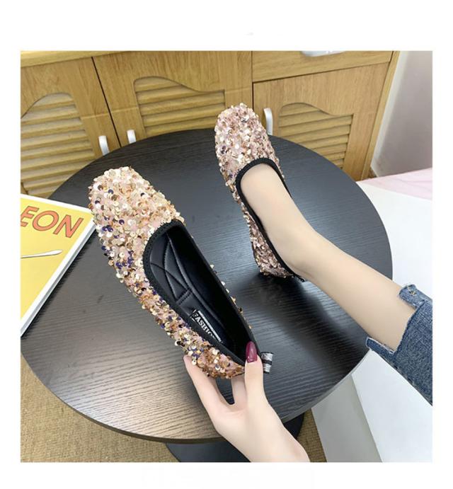 キラキラ パンプス ローヒール フラットシューズ レディース ぺたんこ スパンコールシューズ バレエシューズ 歩きやすい 疲れない カジュアル 痛くない 大きいサイズ 黒 ピンク