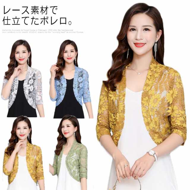 送料無料 総レースシースルー素材 七分袖ショート丈ボレロカーディガン トッパーカーディガン ショートカーディガン 入学式 入園式 キレイめ UVカット 冷房対策 UV対策 春夏 レディース