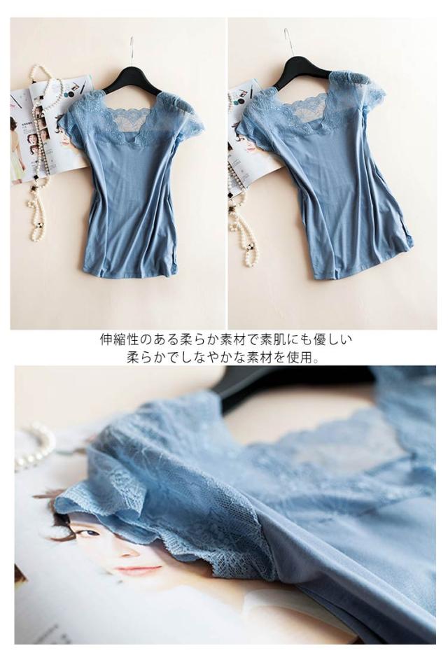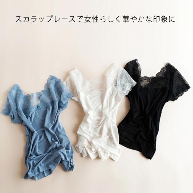 | スカラップレースで女性らしく華やかな印象に 襟元には繊細なスカラップレースを使用、着るだけでフェミニンな印象に。 伸縮性のある柔らか素材で素肌にも優しい 柔らかでしなやかな素材を使用。 伸縮性もあり、程よくフィットします。 さらっと1枚着た上に、ニットやカーディガンを羽織れば大人な雰囲気に。 チラ見せレースでガーリーな重ね着コーデにも。 | |