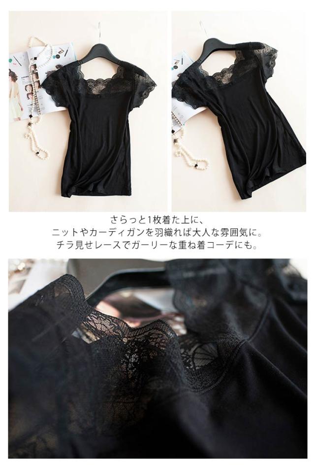 前後で着れる2way!レースタンクトップ レース トップス タンクトップ 半袖 Tシャツ 2way レディース インナー Vネック スクエアネック スカラップレース キャミソール 春夏 夏