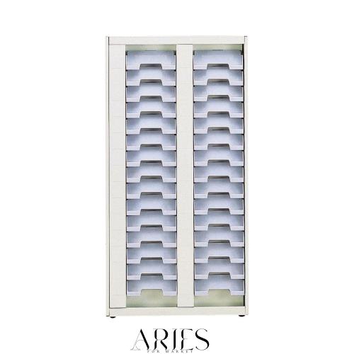 30口座の見出しシールが貼れるスタンド・壁掛け併用タイプ。一列に15口座、2列で30口座のIDカードの収納が可能です。〈br〉分類用の見出しが貼れるサン付き。ポケットにはネーム用シールが貼れます。〈br〉スタンドは本体内に収納でき、壁に掛けて使用される際じゃまになりません。〈br〉吊り下げ用のフック穴が裏面上部についています。(*吊り下げ用のフック等は付属していません。)