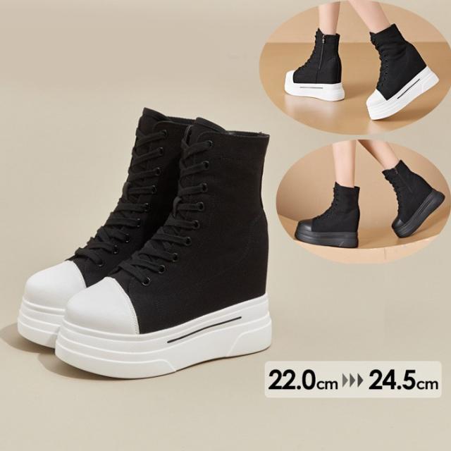 厚底スニーカー レディース 編み上げタイプ シューズ カジュアル ウォーキングシューズ ブラック おしゃれ かわいい 大きいサイズ 履きやすい 旅行 通勤 通学 人気 靴 厚底 シンプル 無地 美脚 身長アップ