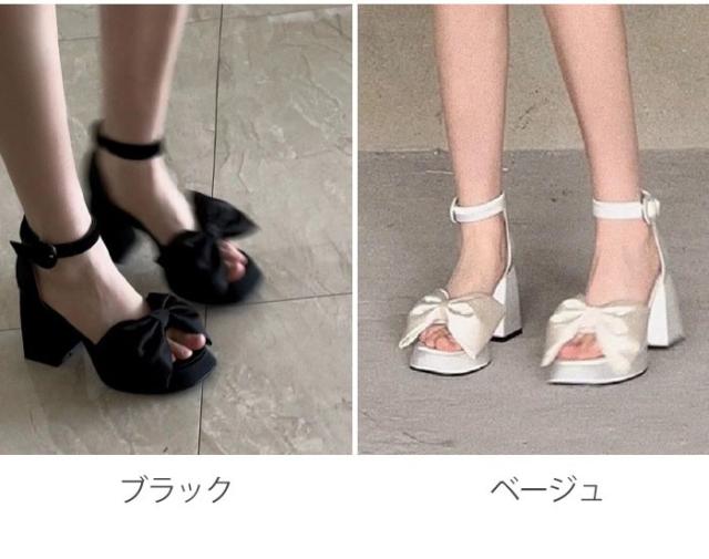 リボン サンダル レディース かかとあり 夏 ベルト ストラップサンダル チャンキーヒール 太ヒール 安定感 ヒールサンダル 厚底サンダル 厚底 靴 女性 大人 美脚 シューズ シンプル