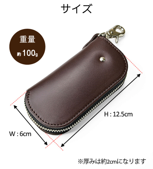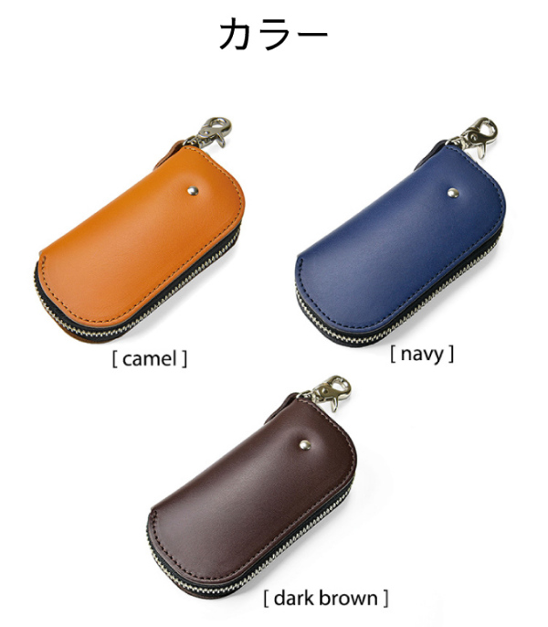 【カラー/型番】キャメル/35-0204-51、ダークブラウン/35-0204-55、ネイビーブルー/35-0204-80【材質】牛革【商品サイズ(約)】幅6×奥行2×高さ12.5cm【商品重量(約)】100g【仕様】■本体収納口:ファスナー開閉式、YKK社製エバーブライト使用■本体外装:ナスカン×1■本体内装:4連キーホルダー×1、リング×1【生産国】日本【ブランド名】LUGGEX(ラジェックス)
