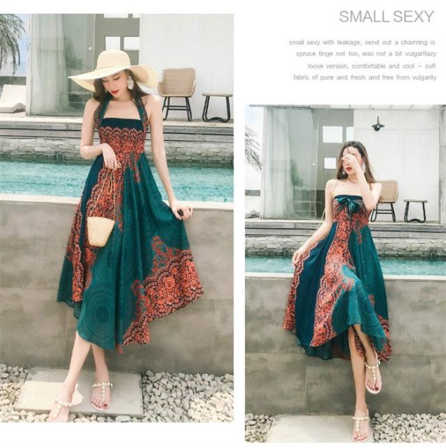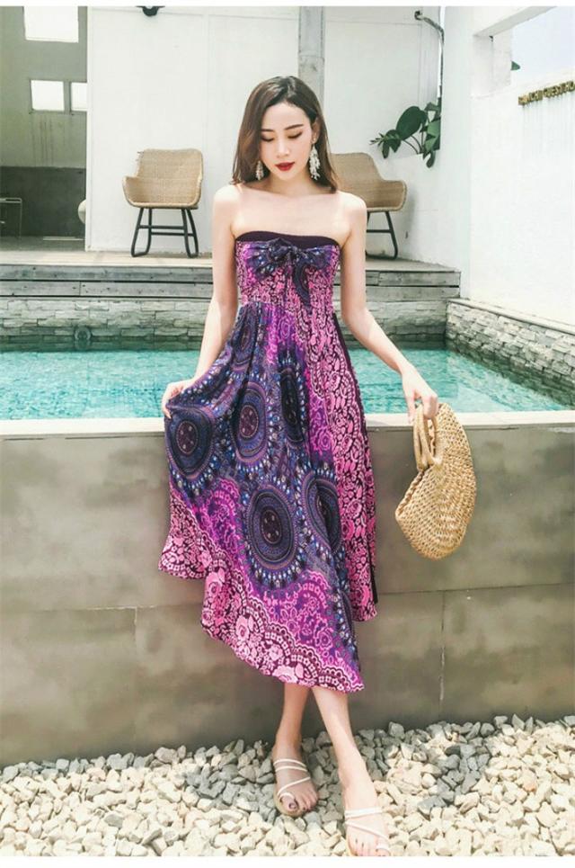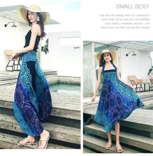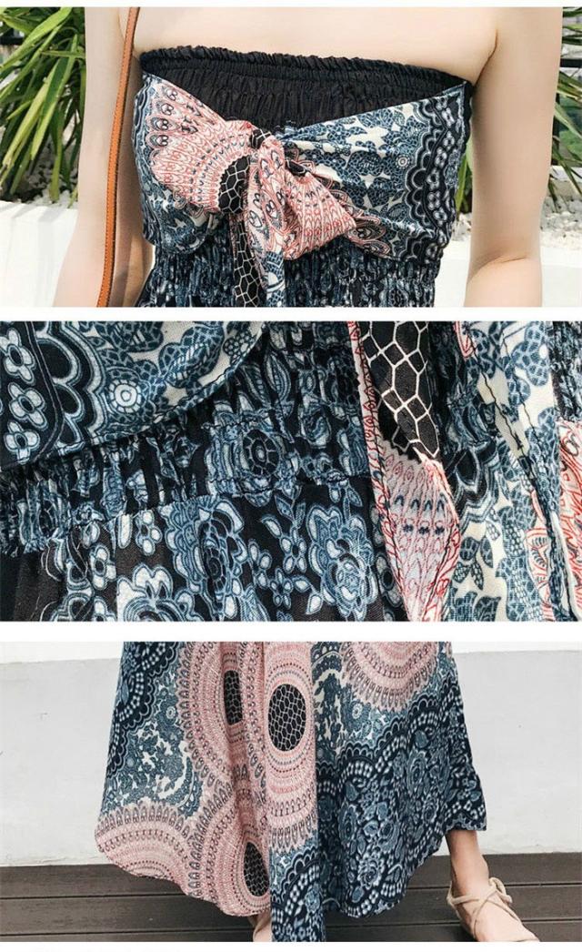 リゾート ワンピース 夏 レディース 海 ワンピース ロングスカート リゾートスカート コンバーチブルスカート 2ウェイスカートワンピース エスニック柄ワンピース ビーチ オーバルドレス 海 サマー マキシ丈 タイ風 フリーサイズ dy022x1x1m5