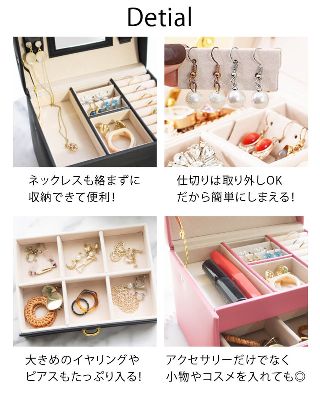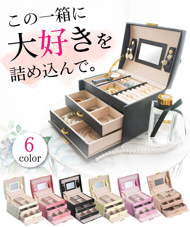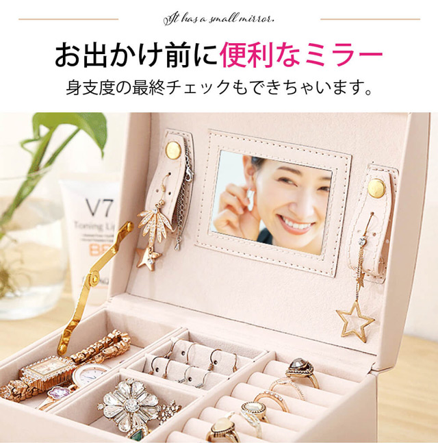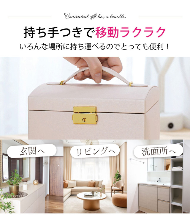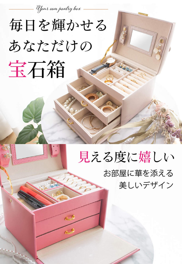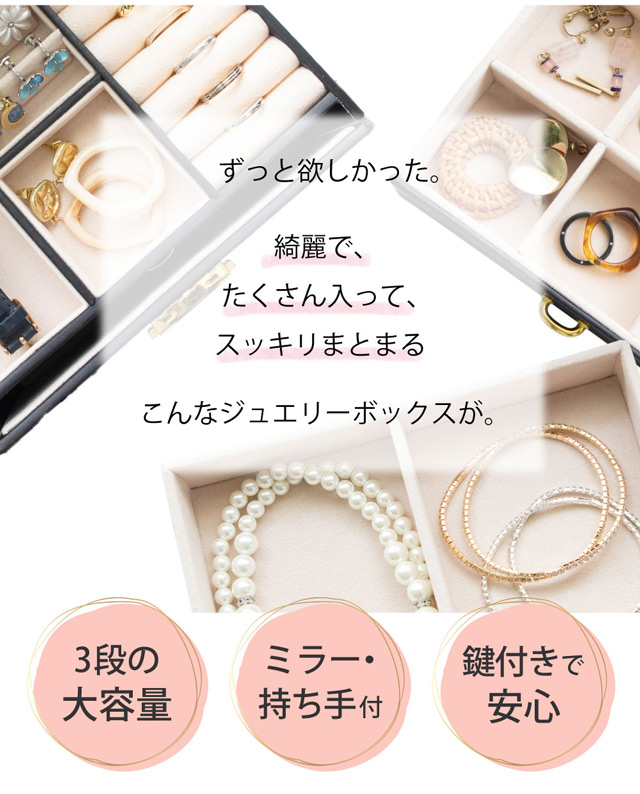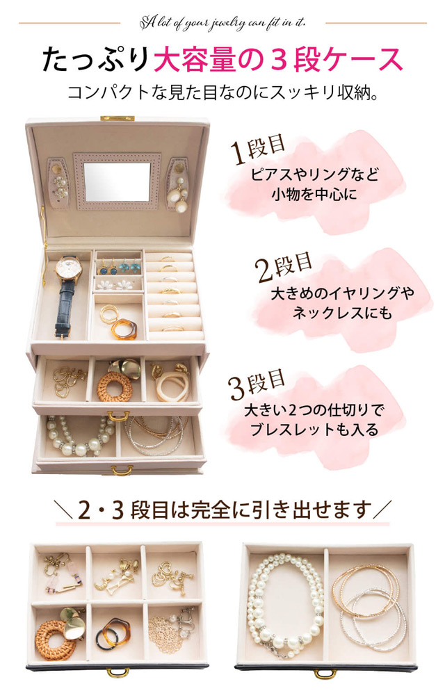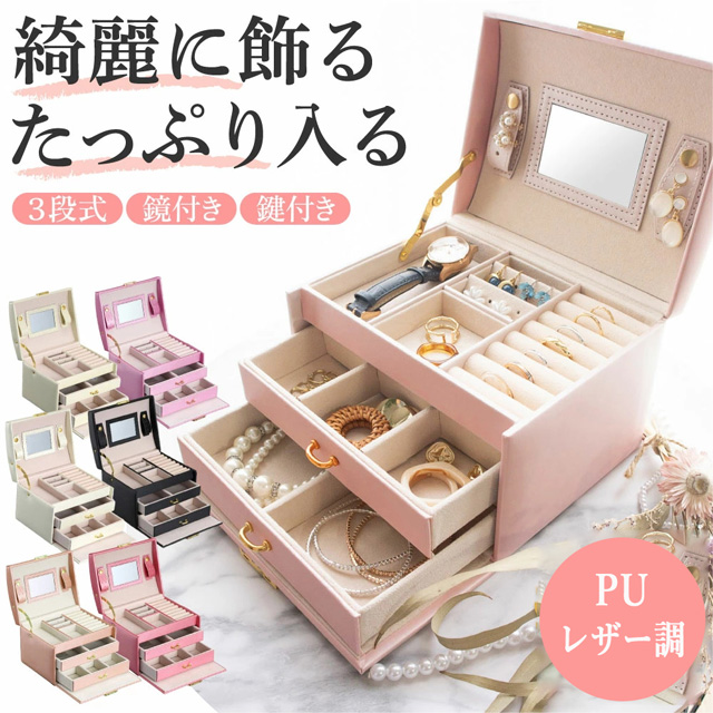 「クーポン配布中」3段 ジュエリーボックス レザー調 ジュエリーケース アクセサリーボックス アクセサリーケース アクセサリートレイ 宝石箱 ネックレス 収納ボックス ミラー付 鍵付き 持ち運び取りっ手付 大容量収納 母の日 クリスマス プレゼント
