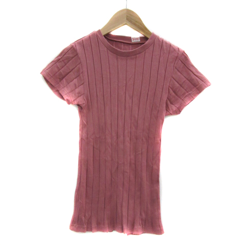 【中古】ヤングアンドオルセン YOUNG & OLSEN リブカットソー 半袖 ラウンドネック 無地 1 ピンク /YS28 レディース