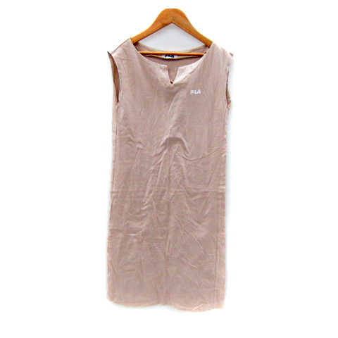 【中古】フィラ FILA ワンピース ひざ丈 ノースリーブ スリットネック 無地 ロゴプリント F ピンク レディース