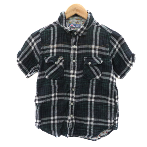 【中古】ビームスハート BEAMS HEART カジュアルシャツ 半袖 チェック柄 マルチカラー 紺 ネイビー レディース