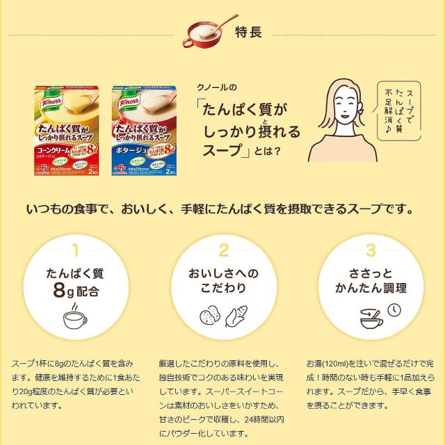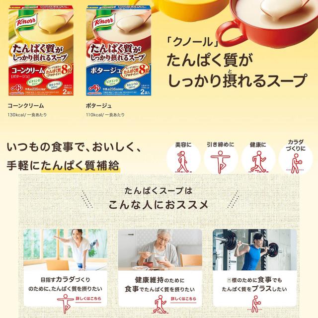 味の素 クノール たんぱく質がしっかり採れる コーンクリーム ポタージュ 1箱 2箱 4箱 2人分 JINOMOTO 即席スープ タンパク質 栄養 簡単調理 クノール 品 プロテイン 高たんぱく質 タンパク質 ビタミンD カルシウム チャーハン デザート 蒸しパン パン スープ