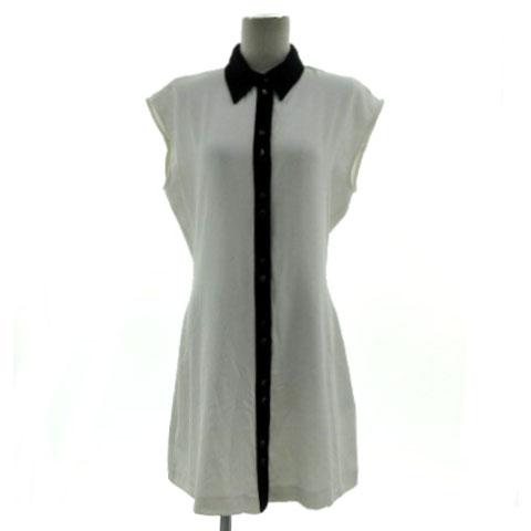 【中古】ザラ ZARA ワンピース シャツワンピース フレンチスリーブ ミディ丈 配色 ホワイト 白 ブラック 黒 S