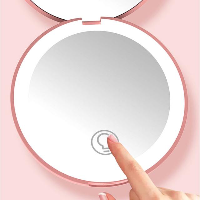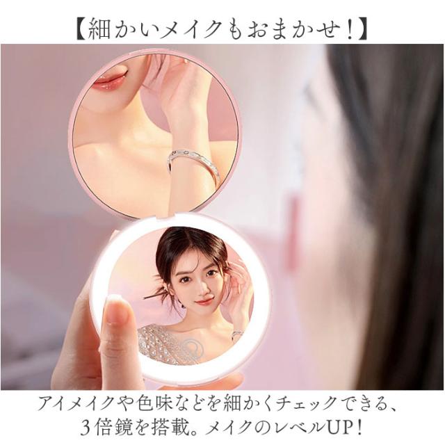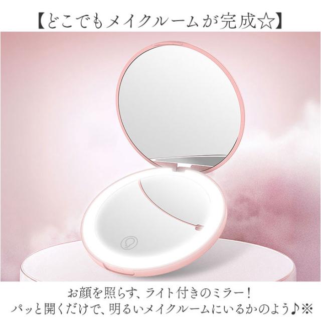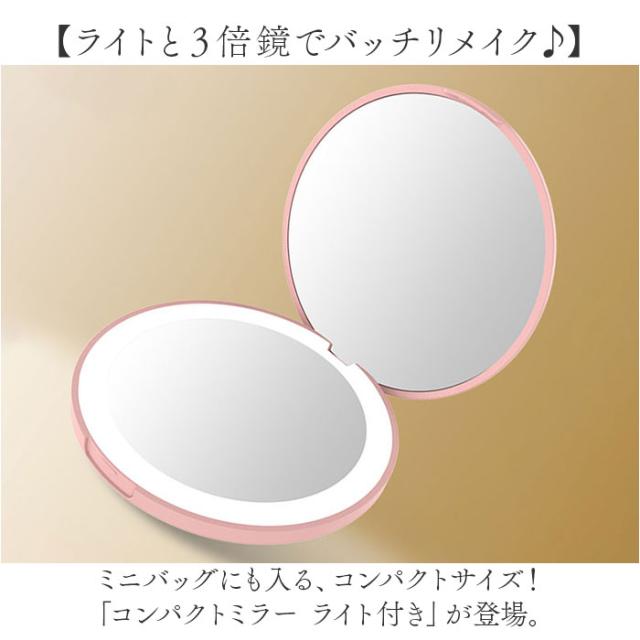 コンパクトミラー ライト付き 通販 鏡 手鏡 ミラー コンパクト 化粧鏡 折りたたみ 折り畳み 持ち運び 拡大鏡 おしゃれ かわいい LEDミラー 電池式 両面 丸 円形 軽量 手持ち 見やすい 光る 旅行 お出かけ メイク直し メイクアップ