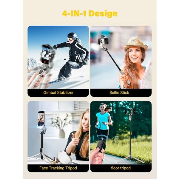 顔追跡AIジンバル スタビライザーSMART M2Pro。多機能スマホスタビライザージンバルはAI追尾式スマホスタビライザーだけでなく、自撮り棒やスマホホルダーにもなります。様々な状況で使用できます。TikTok、ビデオブログ、ライブスクリーミングに使用できます。この自撮りジンバルスタビライザーM2Proを使えば、自撮りや集合写真を撮ることもできる。一人旅ではスマホホルダーとしても使えます。様々な環境で便利なジンバルスタビライザーです。