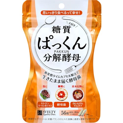 メーカーよりスベルティの正規品(新品、未開封)は、 販売、 発送と一部のストア(スベルティの正規代理店)のみで販売されています。その他の店舗でご購入いただいた商品の問合せ・返品についてメーカーでは原則対応しておりません。購入の際にご注意ください。 新発想タイムカプセル製法で生きたまま届く酵母菌。 ぱっくん分解酵母がすっきりをサポート 油っぽい食事が好きな方へ。高吸着型キトサンが 楽しい食事をサポート 生活習慣が気になる方に。 食べる事が好きな方に。 食品として、1日2~4粒を目安に水またはぬるま湯でお召し上がりください。 原産国:日本 内容量:56粒