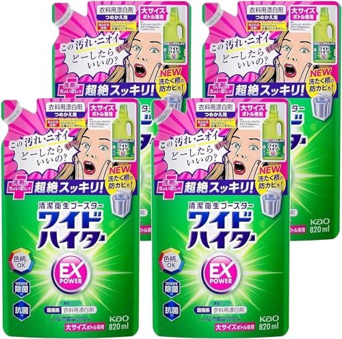 花王 ワイドハイター EXパワー 大サイズボトル専用 つめかえ用 (820mL) X 4個 詰め替え用 衣料用漂白剤 色柄にOK