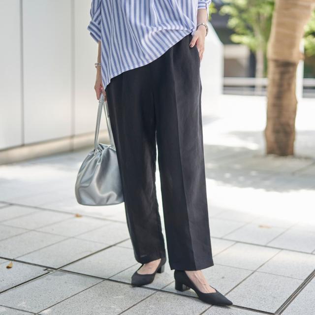 接触冷感リネンレーヨンテーパードパンツ(WEB限定サイズ)