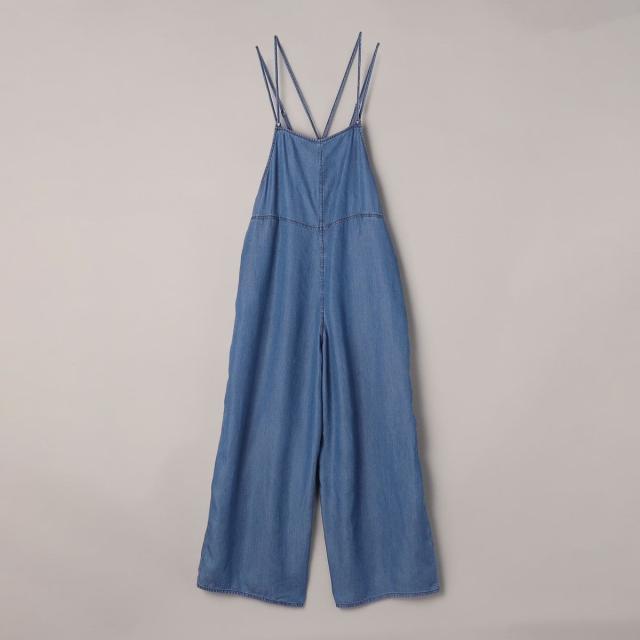 薄くてトロミのある大人ライトデニム素材を使用した、軽やかなキャミサロペット。