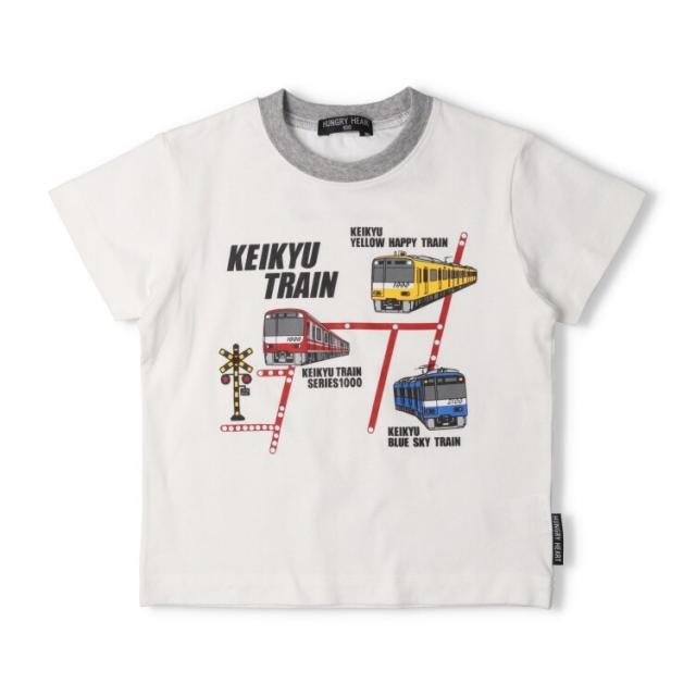 男の子が大好きな電車!京浜急行電鉄株式会社商品化許諾済み商品です。赤い車体の1000形、イエローハッピートレイン、ブルースカイトレインの車体のプリント入り。人気の踏切も!夏のお出かけにオススメな半袖Tシャツ。【アイテム】トップス カジュアル お洒落 オシャレ かっこいい かわいい 可愛い 普段着 デイリーウェア お出かけ着 お外遊び着 子ども こども 男児 男の子 ボーイズ キッズ ベビーサイズ トドラーサイズ 幼稚園 保育園 小学校 通園 通学 小学生 2025年春夏物新作 丸高衣料 鉄道 子鉄 車両 電車 電鉄 トレイン ホワイト 白色 グレー 灰色 ハングリーハート コットン100% 綿100%