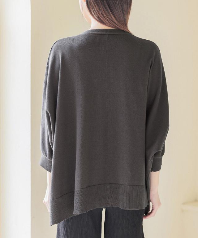 ドルマンスリーブが二の腕を包み込み、お尻が隠れる絶妙な丈感が、体型をナチュラルにカバー。