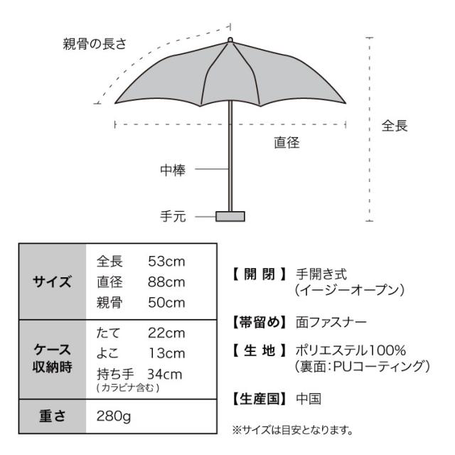 ※激しい雨や長時間の雨傘としてのご使用は雨漏りや色落ちの原因となる可能性がございます。
