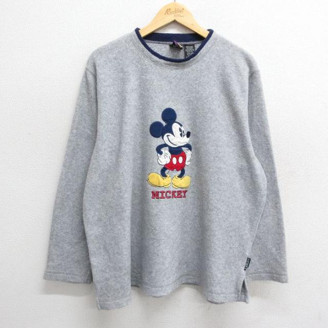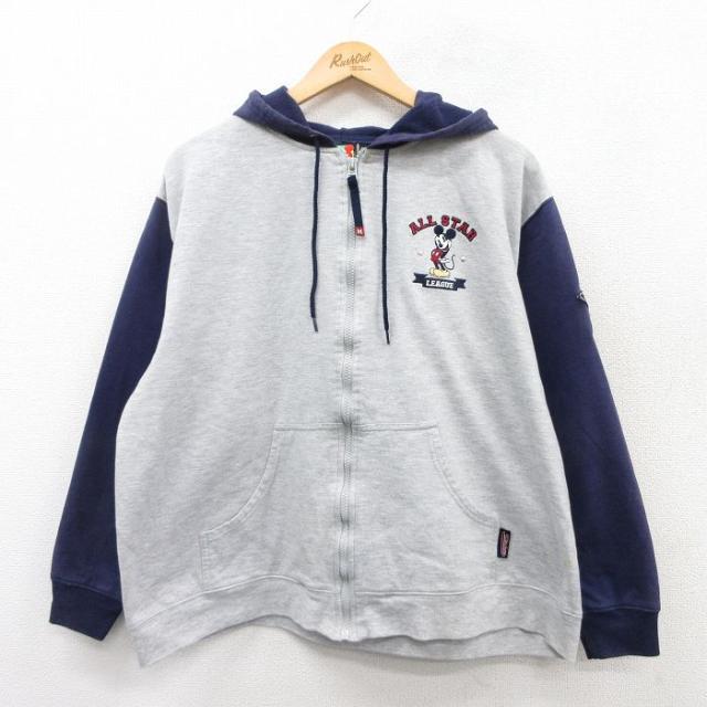 【商品名】 古着 長袖 フルジップ スウェット パーカー レディース 90年代 90s ディズニー ミッキー 大きいサイズ グレー 霜降り他