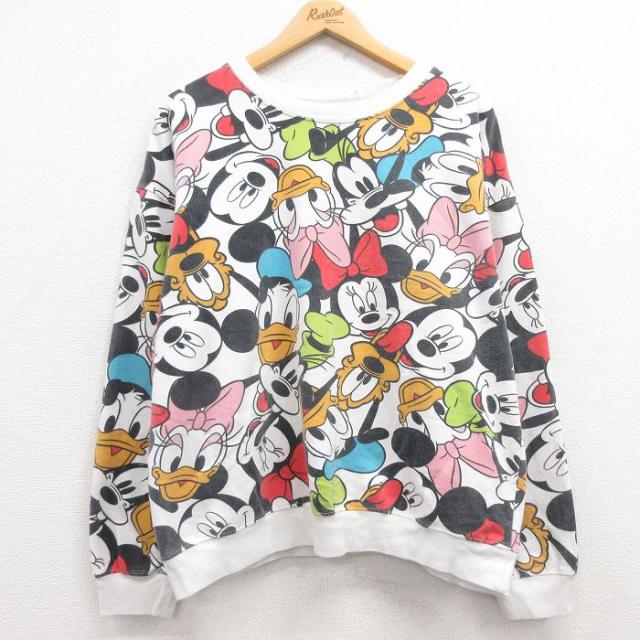 古着 長袖 フルジップ スウェット パーカー レディース 90年代 90s ディズニー DISNEY ミッキー MICKEY MOUSE 大きいサイズ グ 中古 古着