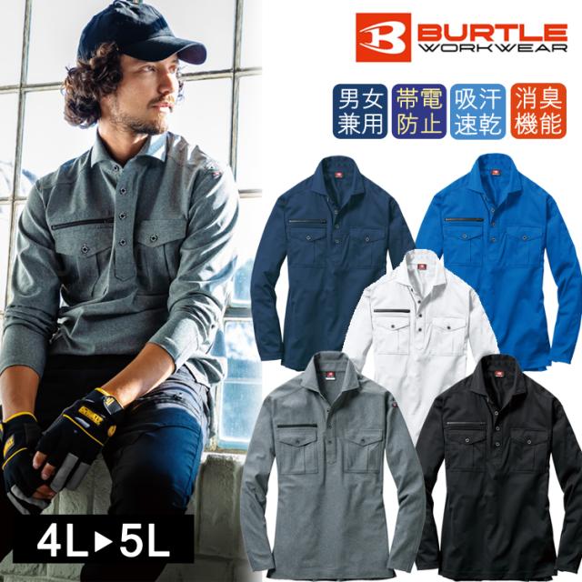 大きいサイズ バートル 長袖シャツ 705 作業着 ワークウェア BURTLE 作業服 ワークシャツ ドライ 男女兼用 消臭 吸汗速乾 ストレッチ 制電