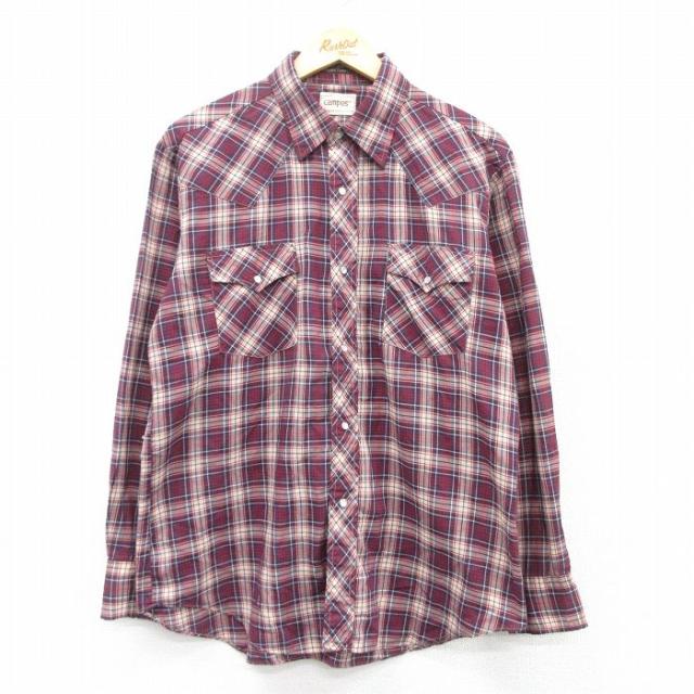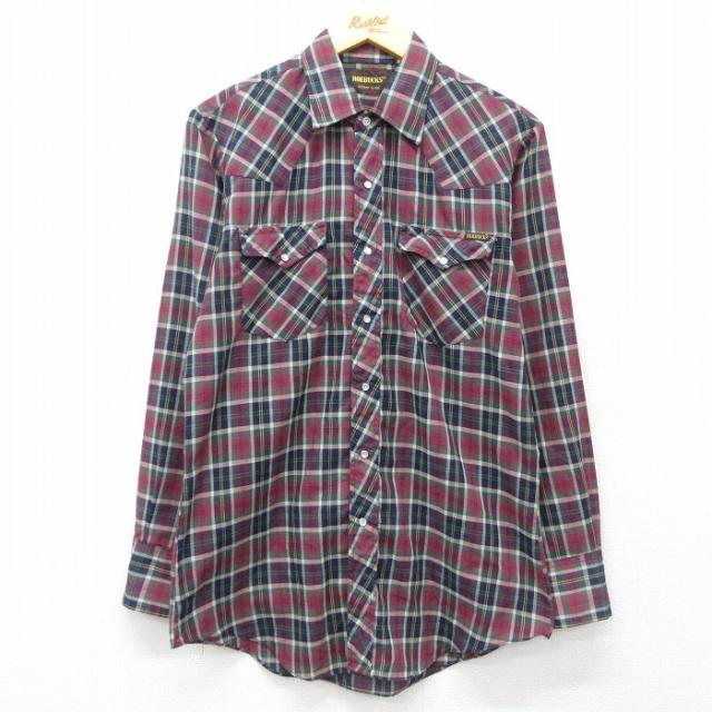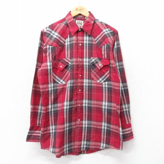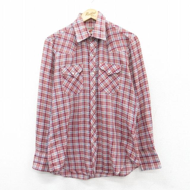 古着 長袖 ウエスタン シャツ メンズ 80年代 80s 赤他 レッド チェック Mサイズ 中古 トップス 中古 古着