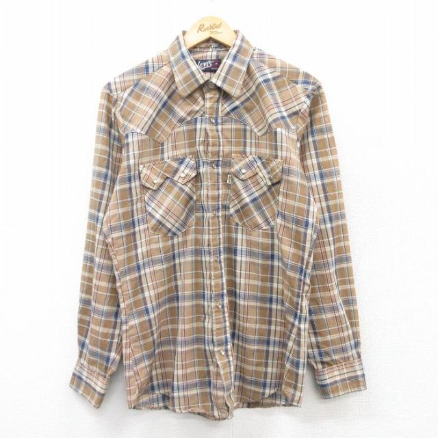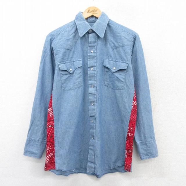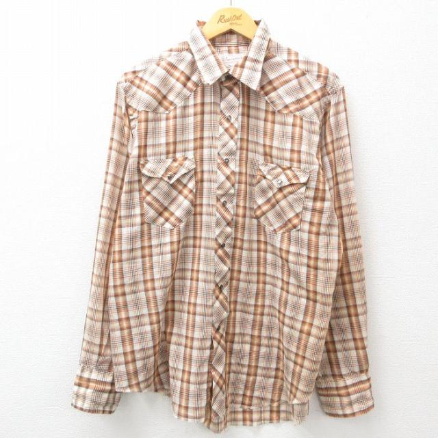 【商品名】 M★古着 長袖 ウエスタン シャツ メンズ 80年代 80s 赤他 チェック