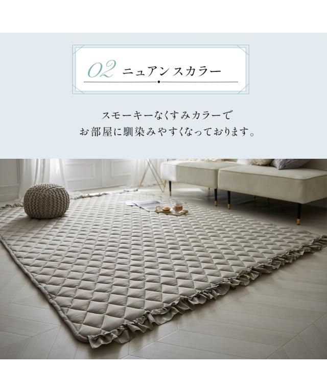 洗える接触冷感キルトラグ ダブルフリル【フルーエ/大人可愛い】