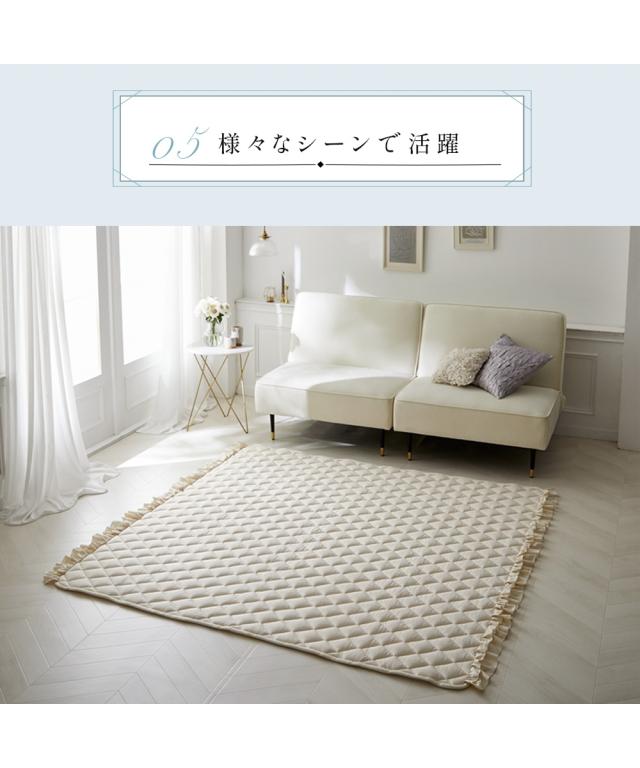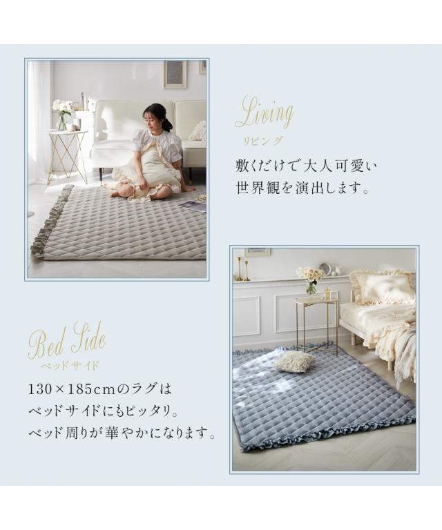 ラグ カーペット 絨毯 洗える 接触冷感 キルトラグ|ダブルフリル フルーエ/大人可愛い 夏 おしゃれ 約185×240cm ニッセン nissen