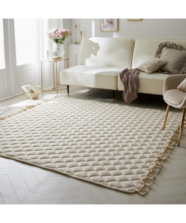 洗える接触冷感キルトラグ ダブルフリル【フルーエ/大人可愛い】