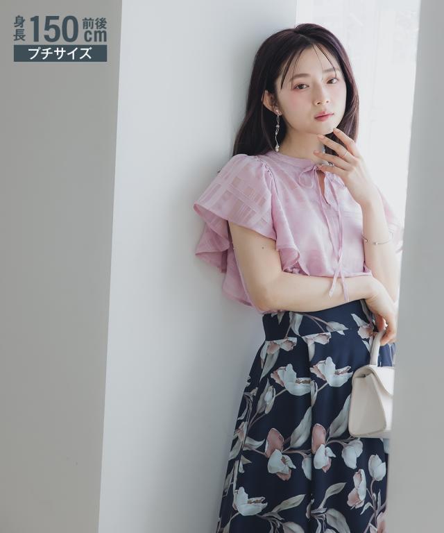 【150cm前後の小柄・低身長女性向けブランド-プッチージョ-】シアー生地にチェック柄をあしらった、かわいらしいブラウスです。リボンと袖のフリルがポイントとなっており、コーディネートを華やかに仕上げてくれます。シアー素材が夏っぽさを演出してくれるだけでなく、涼しくストレスフリーに着用いただけるのも魅力の一つです。スカートと合わせてかわいらしいコーディネートに仕上げるのはもちろん、デニムなどカジュアルなパンツや、きれいめパンツと合わせても、あまくなりすぎずーディネート全体のバランスをとってくれるブラウスです。