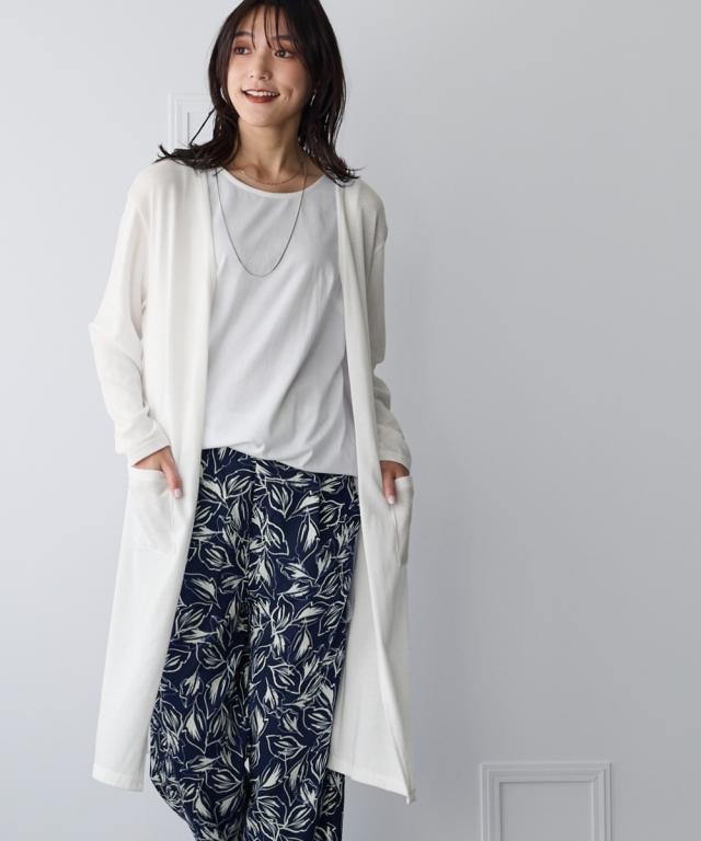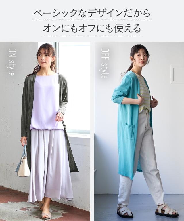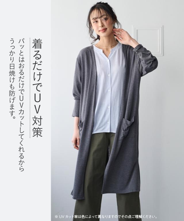 カーディガン レディース 綿混うすカルスリット ロング丈 UVカット 吸汗速乾 抗菌防臭 毛玉防止 夏 羽織り 冷房対策 S/M ニッセン nissen