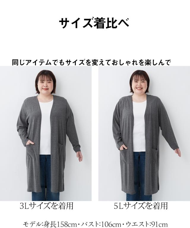 大きいサイズ 綿混うすカルスリットロング丈カーディガン(UVカット・吸汗速乾・抗菌防臭・毛玉防止)