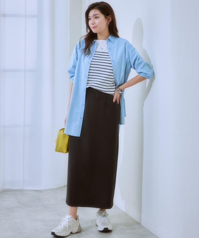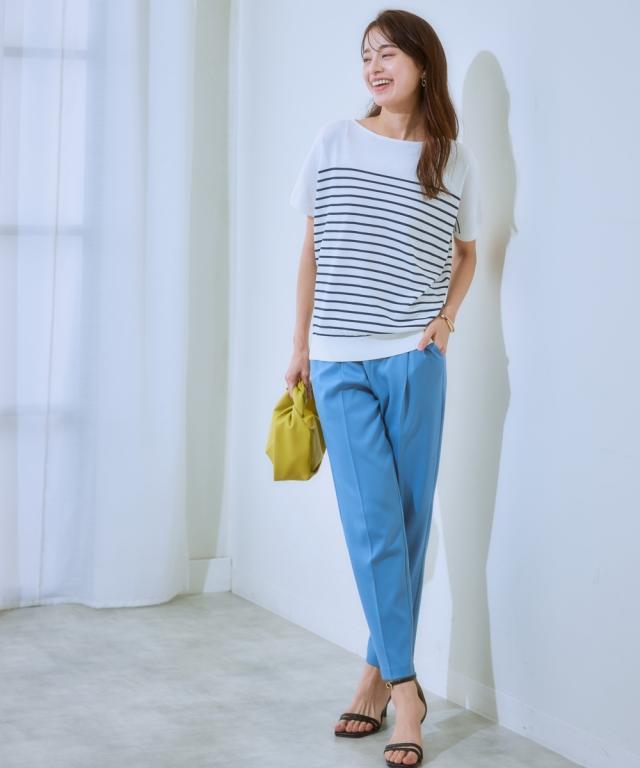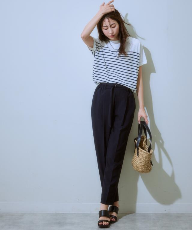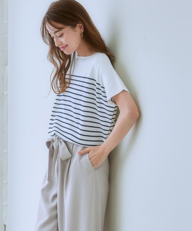 二の腕をソフトにカバーしてくれるフレンチスリーブ、アレンジしやすいサイドスリット入りも嬉しいポイント。Tシャツ感覚で初夏から初秋まで活躍してくれますよ!