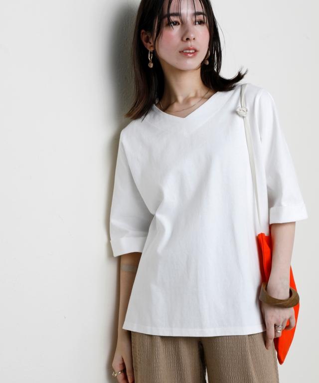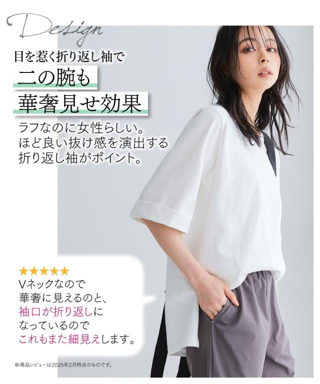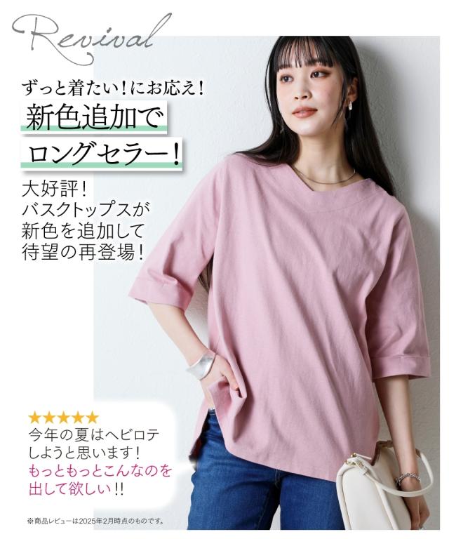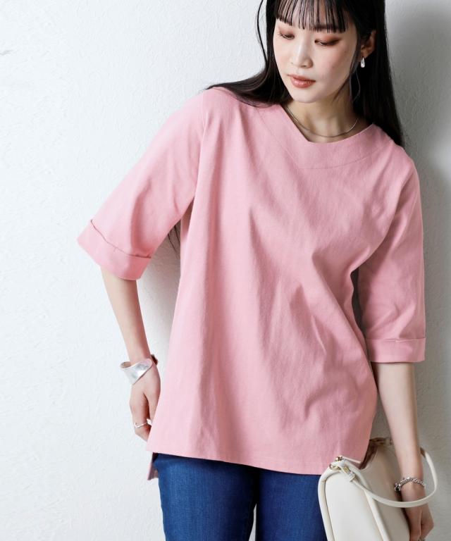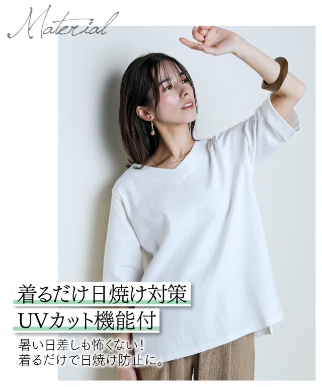 綿100%バスク折り返し5分袖 ネックトップス(UVカット)