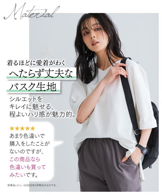 Tシャツ カットソー レディース 綿100% バスク折り返し5分袖?Xネック トップス UVカット 有 S〜M ニッセン nissen