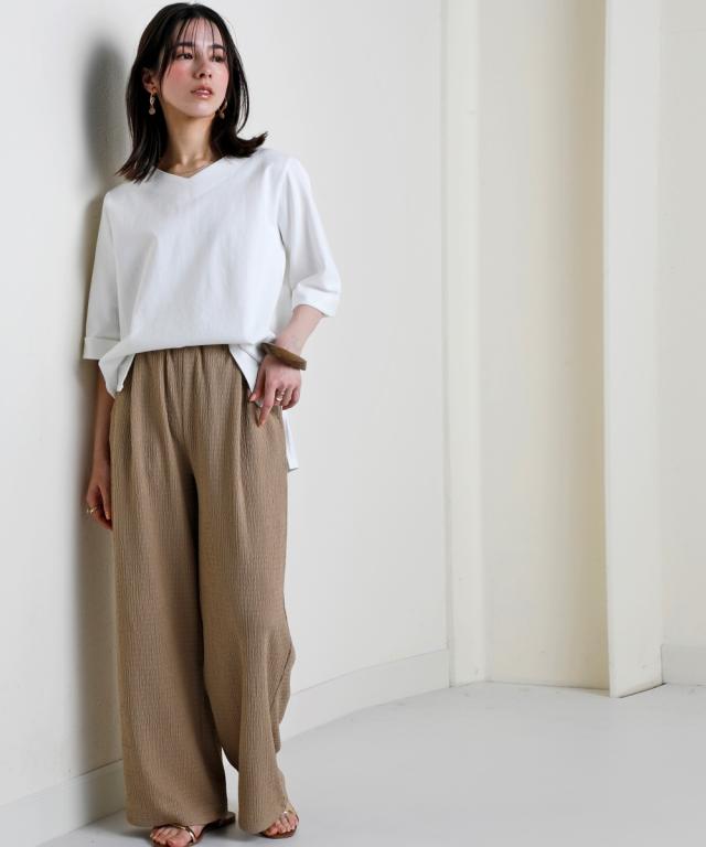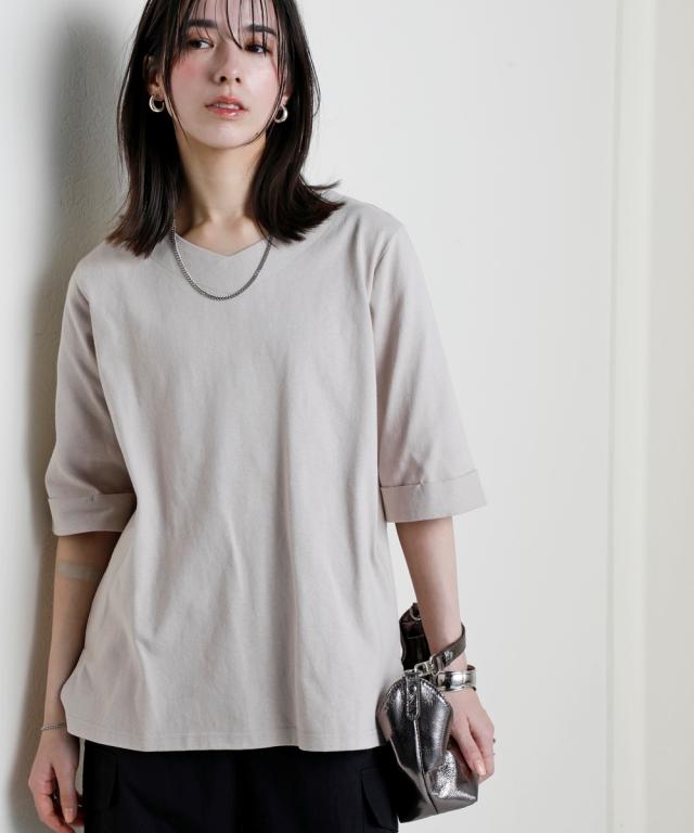 首元は見返し仕様なので、カジュアルになり過ぎず、きれいめコーデにも使いやすいネック仕様です。