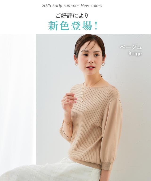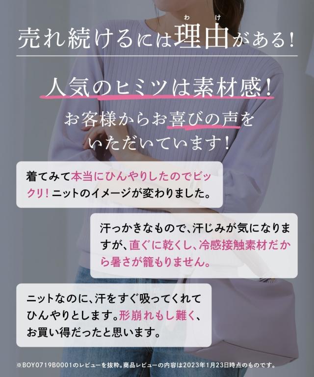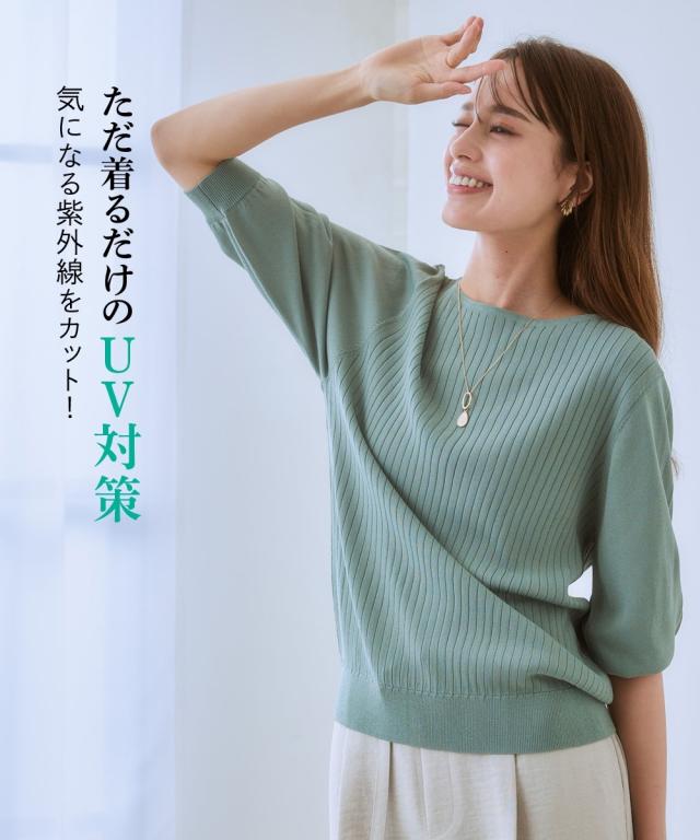 「接触冷感」「UVカット」「毛玉になりにくい」「洗濯機OK」を備えた夏にぴったりのサマーニット。