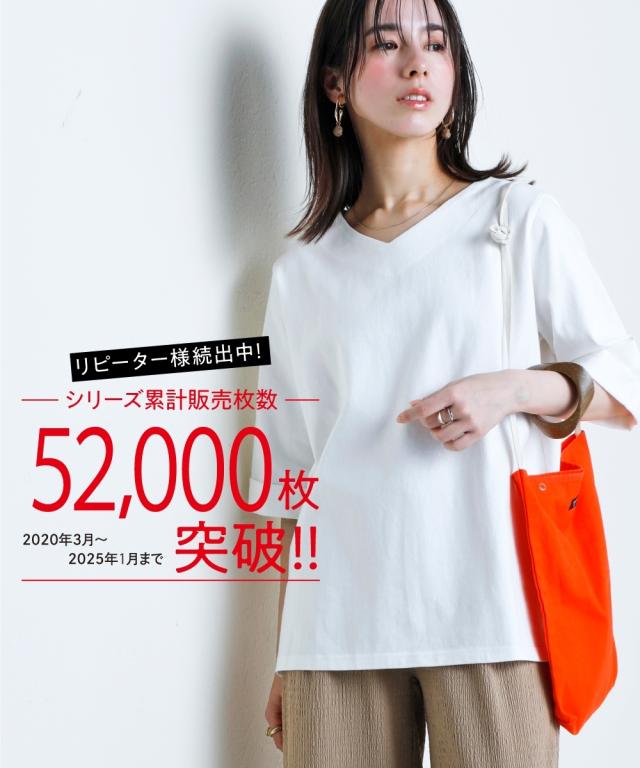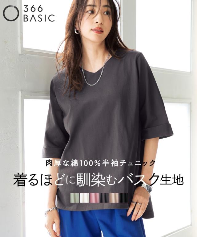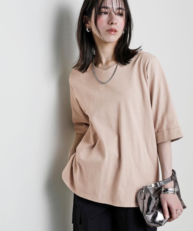 綿100%バスク折り返し5分袖 ネックトップス(UVカット)