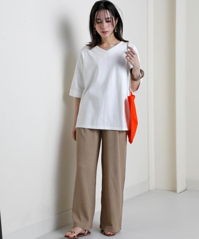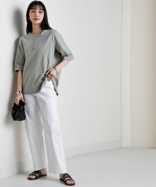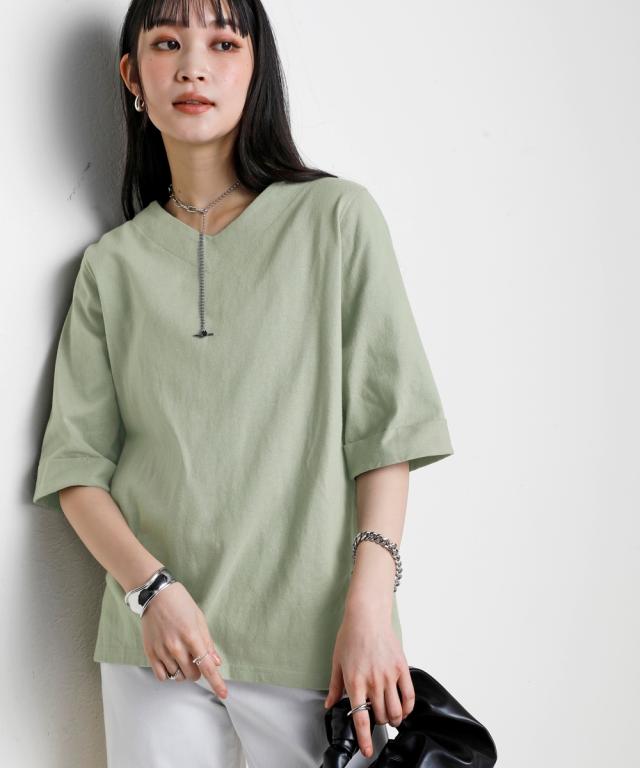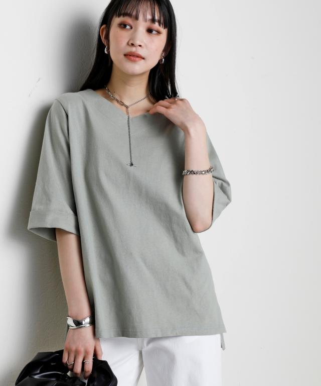 首元は見返し仕様なので、カジュアルになり過ぎず、きれいめコーデにも使いやすいネック仕様です。