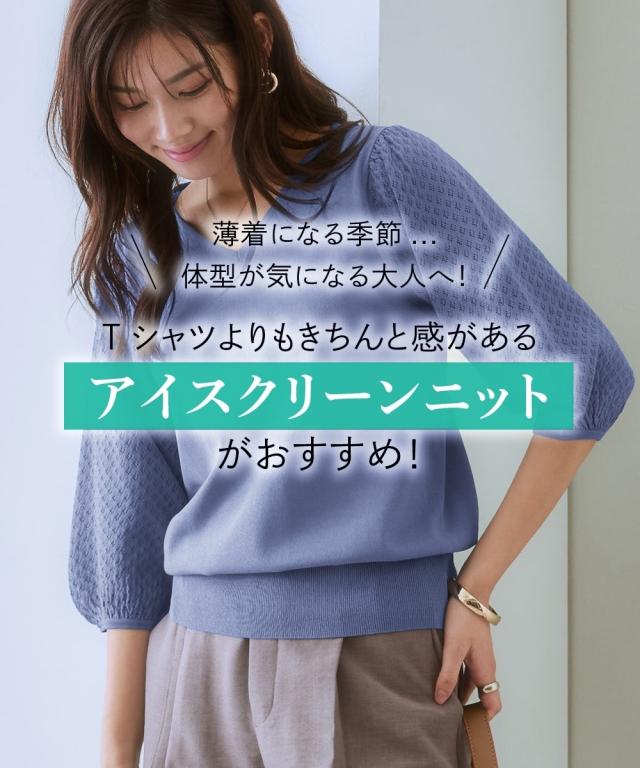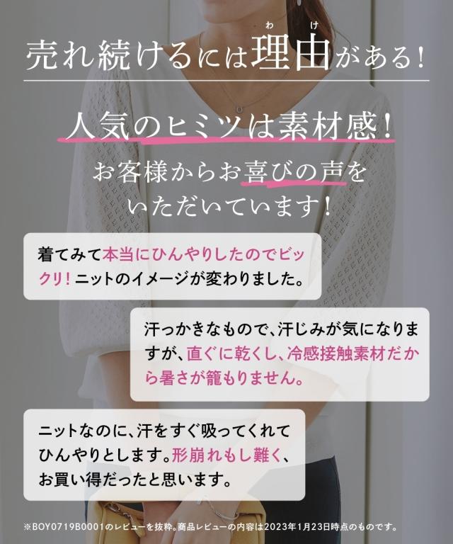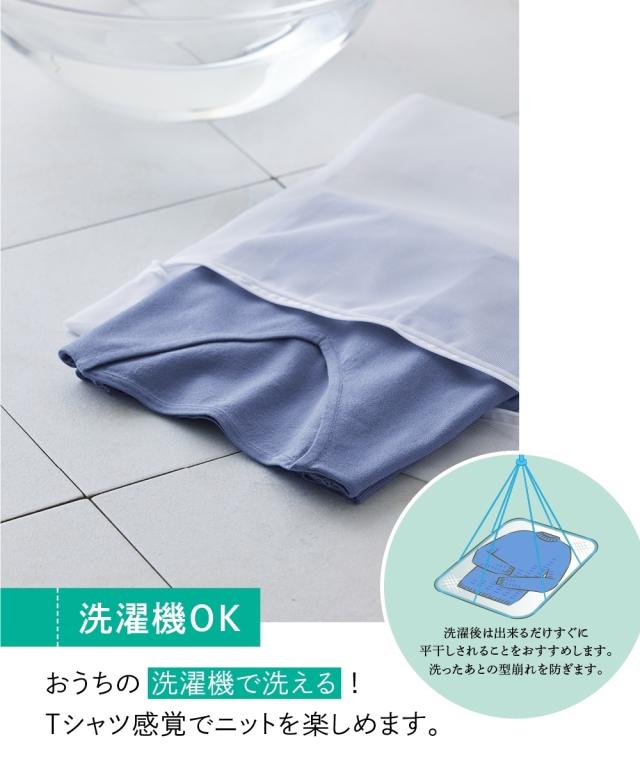 「接触冷感」「UVカット」「毛玉になりにくい」「洗濯機OK」を備えた夏にぴったりのサマーニット。