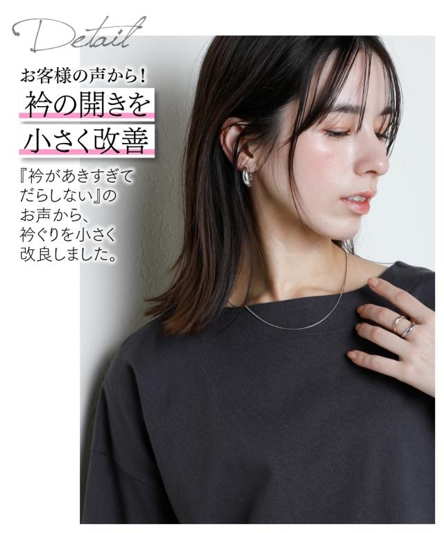首元は見返し仕様なので、カジュアルになり過ぎず、きれいめコーデにも使いやすいネック仕様です。